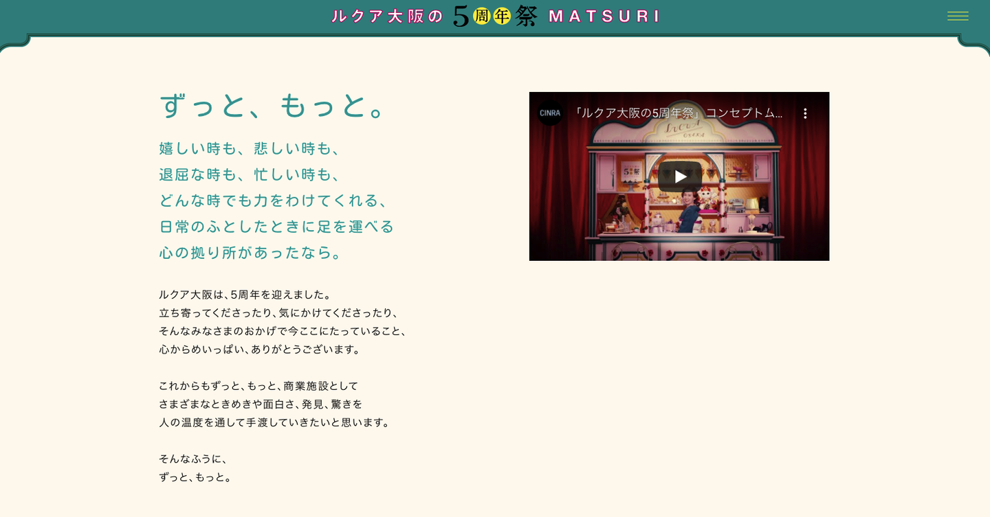 ー今回の『ルクア大阪の5周年祭』は、イベントの企画・運営だけでなく、キャンペーンビジュアルから館内装飾までトータルで1社がプロデュースするという、大規模なプロジェクトですね。ルクア大阪さんは、どのような経緯でCINRAに声をかけたのでしょうか?