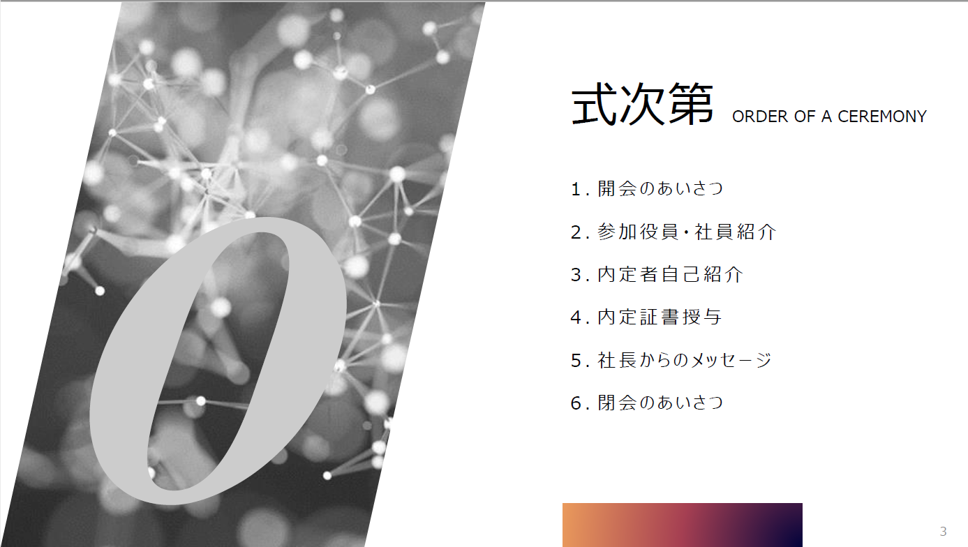 内定式はオンラインで行いましたが、内定者全員が参加でき、サークレイス社員もたくさん参列してくれて充実の式典となりました!