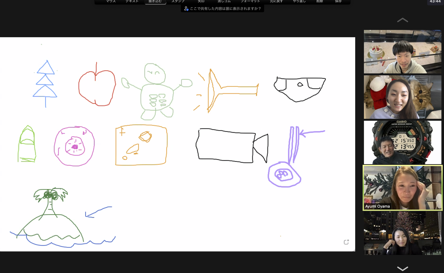 ダイバーシティーに富んだ弊社では、オンライン上でもコミュニケーションを積極的に増やしていけるよう勤めており、チームビルディングセッションを通して社内の一致団結力や交流を促しております!