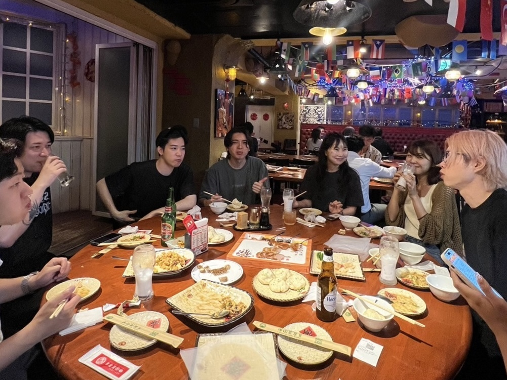 CityCampの四半期定例会では、全社・各部署の数値報告や、次のQで各部署が目標達成するための議論やアイデア出しを全員で行います。またハーフコミットのメンバーも含めて全員が一同に揃うタイミングなので、さまざまな角度からコミュニケーションを取れるよう、お昼は近場のおしゃれランチ、夜は定番の中華料理屋に飲みに行きました。