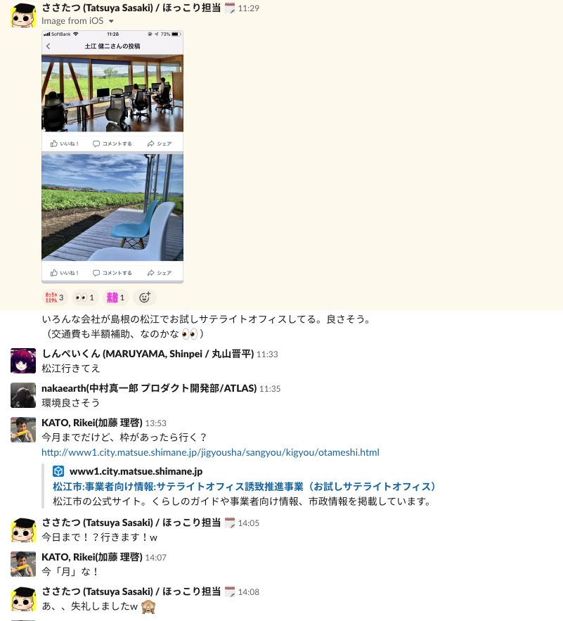 ↑の記事を読んだCTOのささたつ(@sasata299)さんが、Slackで呟いたのがきっかけでした。マイクロソフトさんのステイの様子が掲載されていました。