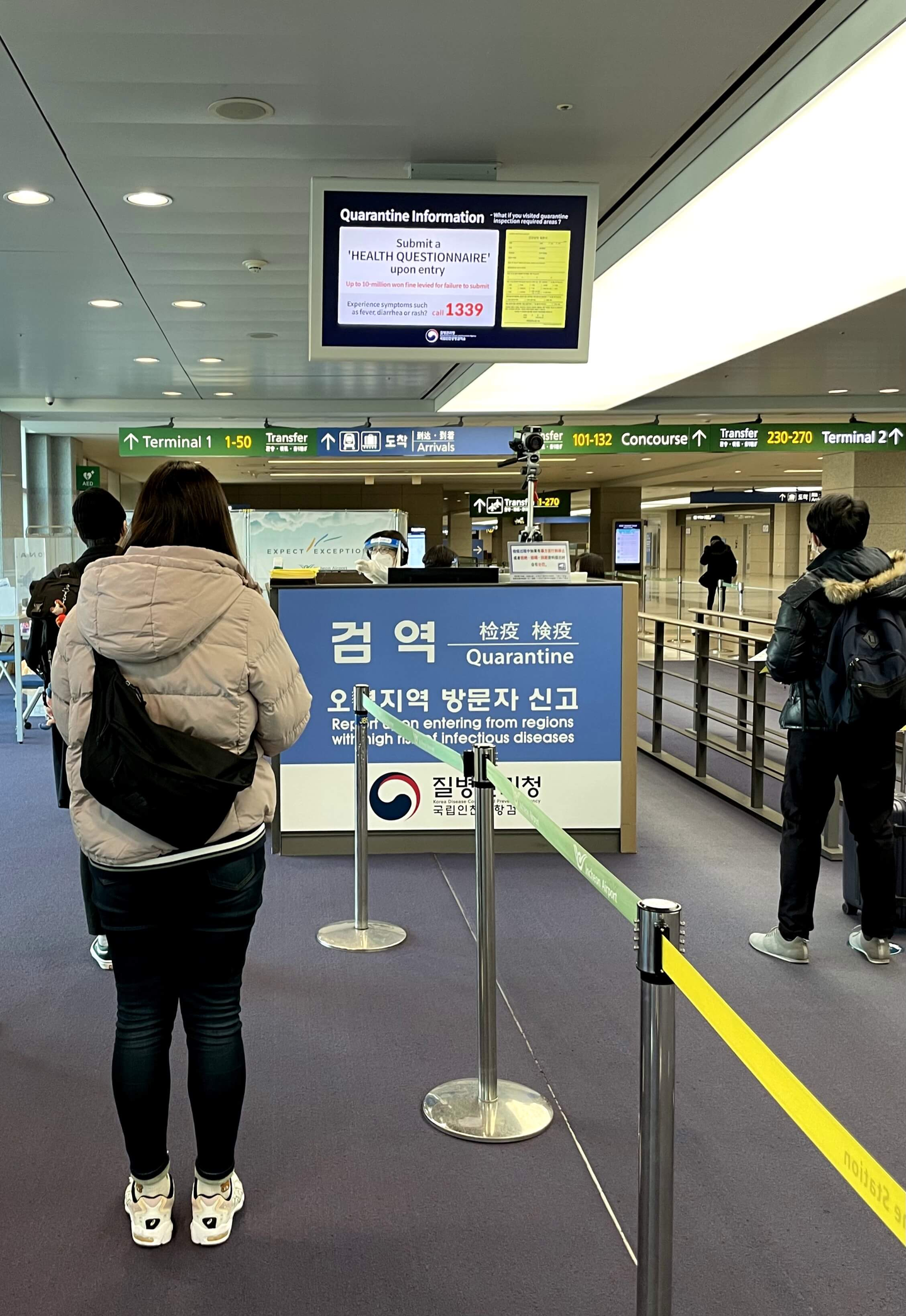 仁川空港に到着! 検疫所で現在の症状と熱をチェックしました。次は隔離中に使うアプリをインストールしてちゃんとインストールされたのか、情報は合ってるのか確認等を行いました。全部終わってから入国審査が可能でした。