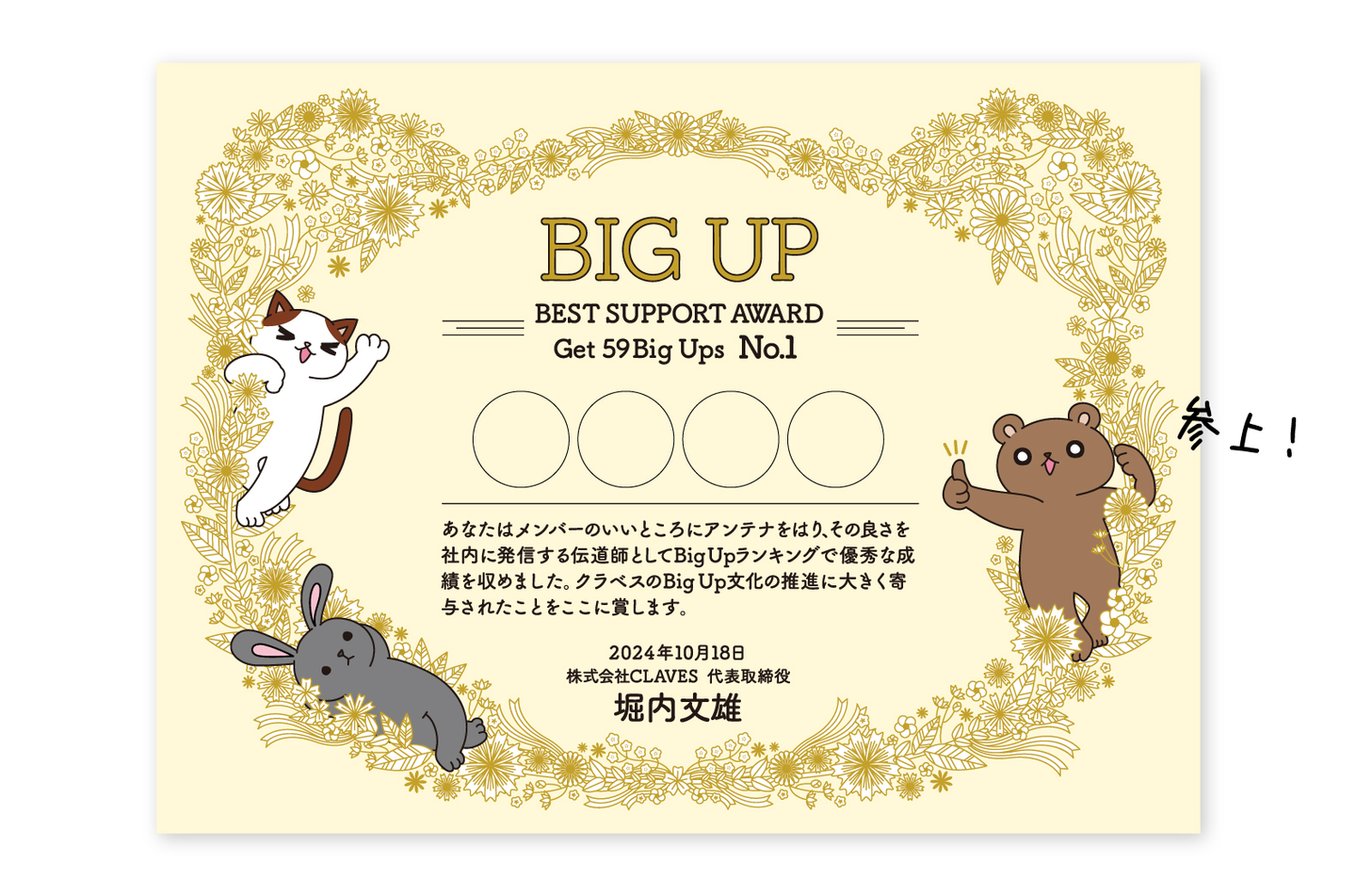 一番の目的は、称賛文化の定着ではあるんですが、順位を発表して「おめでとー」というだけではなく、この何か残るものを、分かる形で残すことが大事だと思っています。