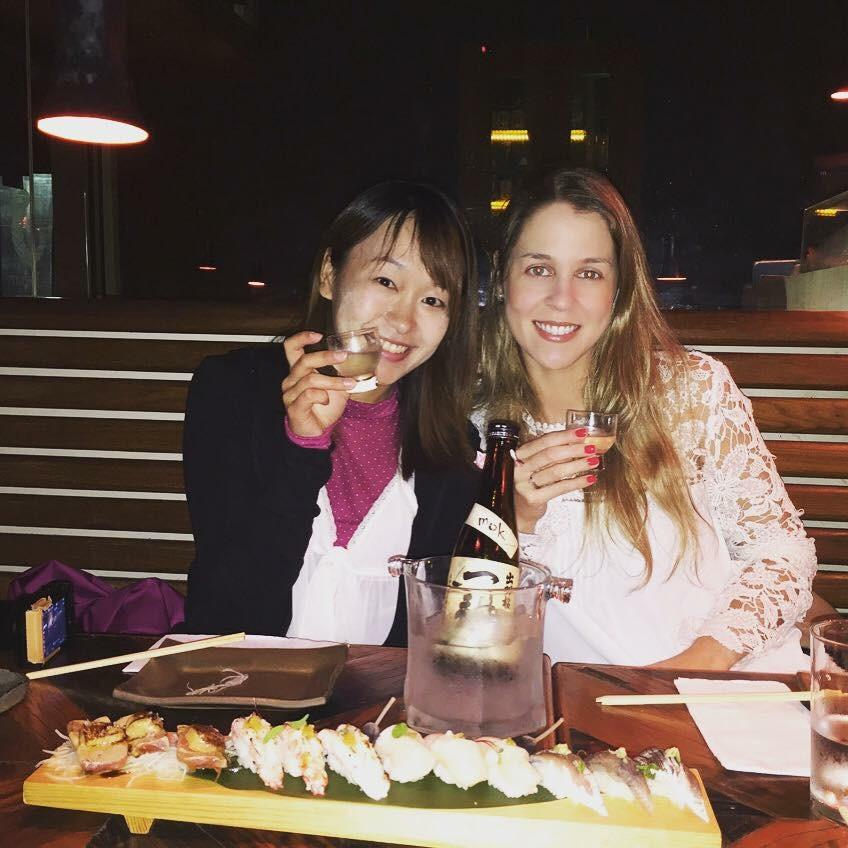 ▲留学時代の友人と、ブラジルで8年ぶりの再会。「世界の日本酒市場を取材している」と話すと、リオ・デジャネイロで話題の創作和食料理店で、そのお店と日本の酒蔵がコラボレーションして造られた日本酒を振舞ってくれた。
