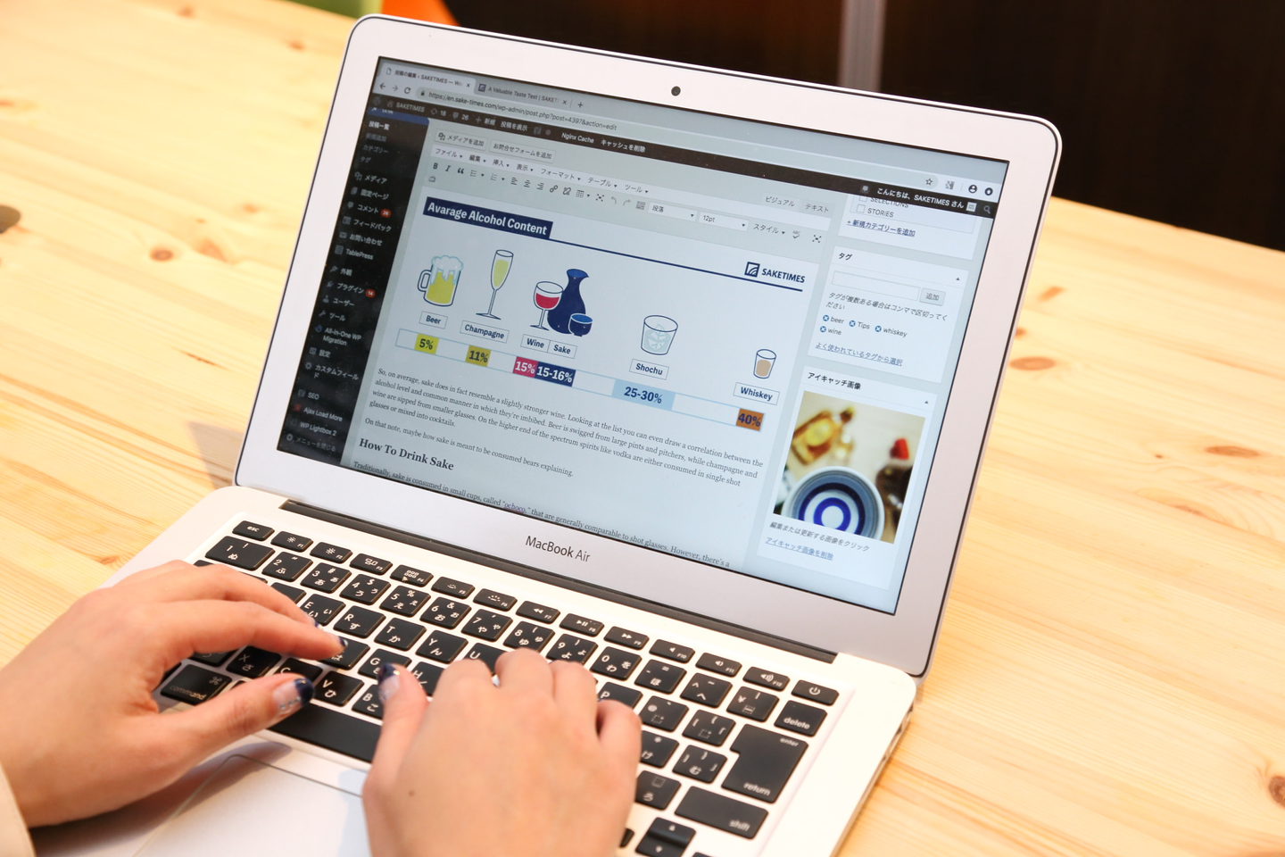 メディアであるInternationalは「SAKE Curious (=日本酒に関心のある人)」を増やすというテーマで情報発信をしています。海外の酒蔵の奮闘をこの目で見てまわってきましたが、実際には、「日本酒って何?」「日本酒って、ウォッカみたいな酒でしょ?」など、日本酒に関心のある人は驚くほど低いのが現状。まだまだSAKEの認知度は低く、しかし、ポテンシャルは限りなく広がっています。イラストを用いてビジュアルで伝えるような記事を企画したり、自然な英語表現となるようネイティブに限定してライターを採用したりと、試行錯誤しつつ進めています。