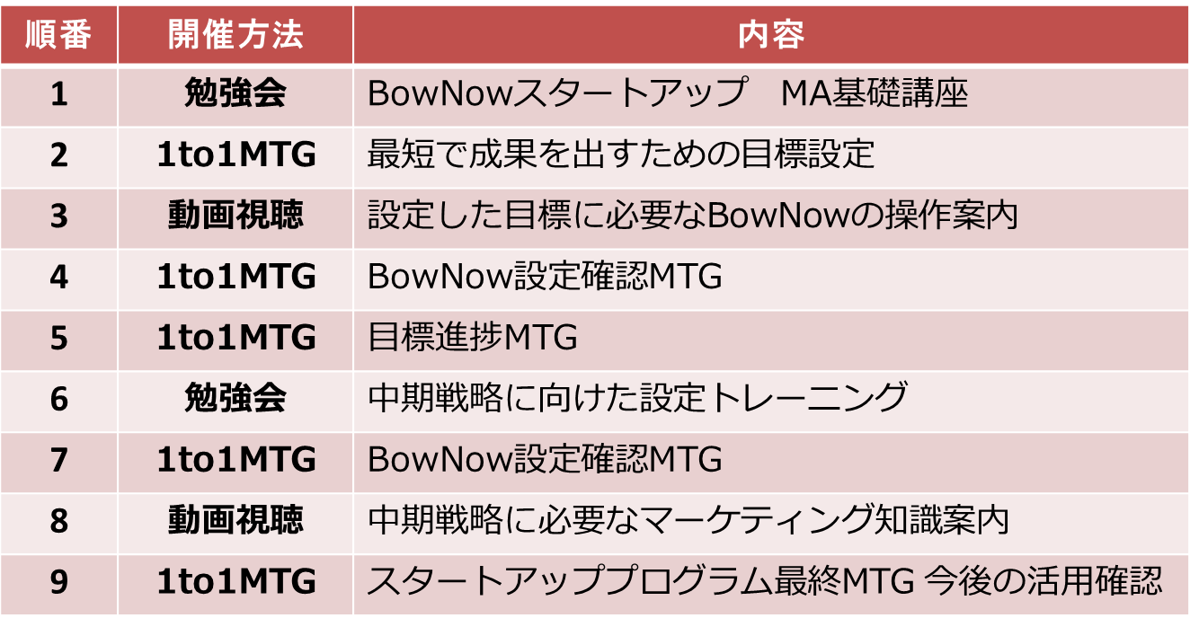 内容は以下の様に9つの段階に分かれており、順番にお客様へ受講を進めています。
