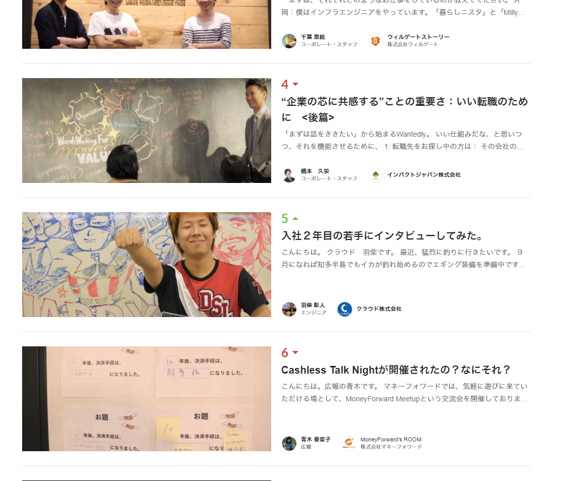 この投稿がWantedly内の急上昇フィードで5位まで上昇しビックリしました(笑。