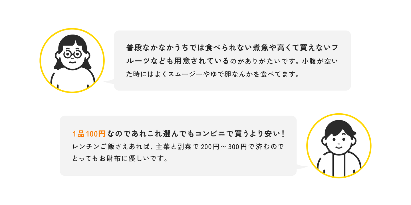 健康的な食生活を応援するため、管理栄養士が監修したサラダやフルーツ、ハンバーグなどのお惣菜が100円で購入できる設置型社食「オフィスで野菜」を導入しています。