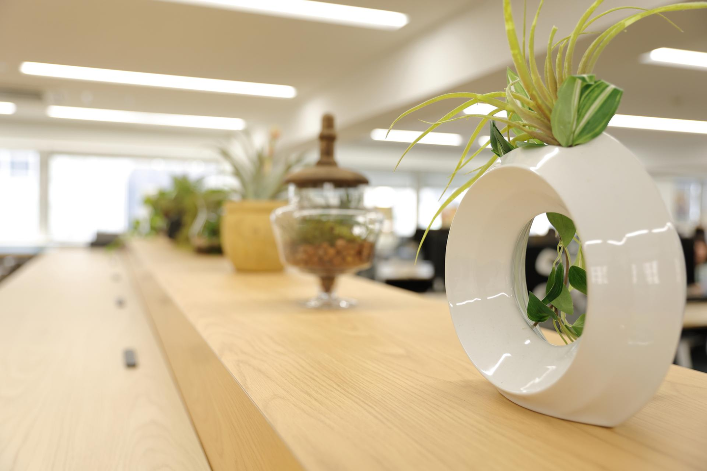 フェイクグリーン(人工観葉植物)を配置。視覚的にも心地よく、リラックスできる雰囲気をつくりだしています。