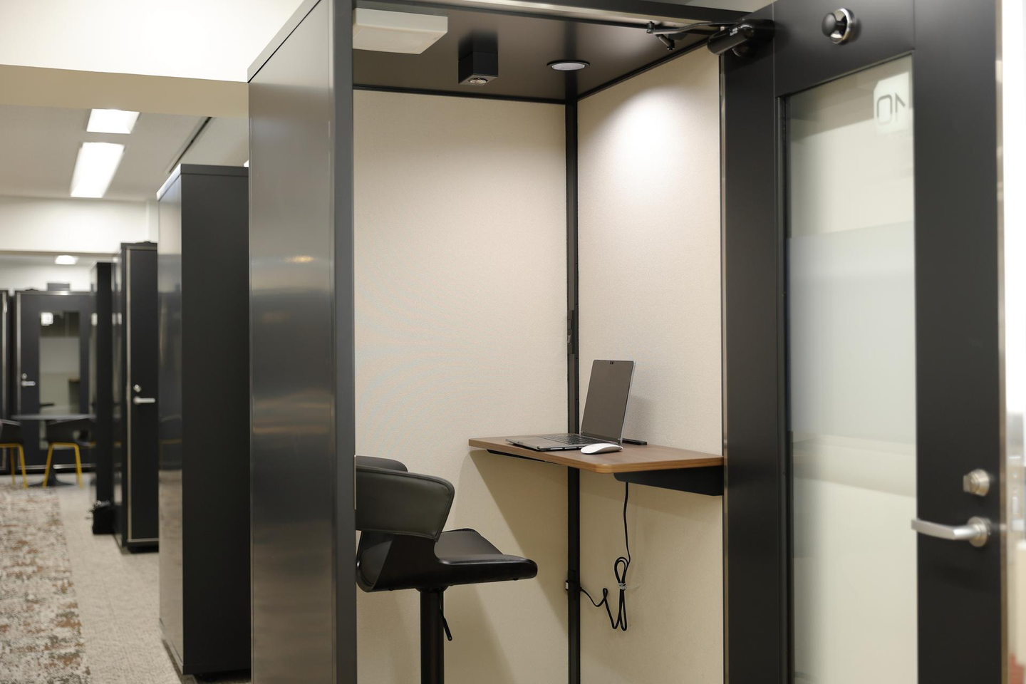 オンラインミーティングや集中作業など、周囲を気にせず仕事に取り組める空間です。予約はWEBカレンダーで行い、チーム間で譲り合いながら活用しています。