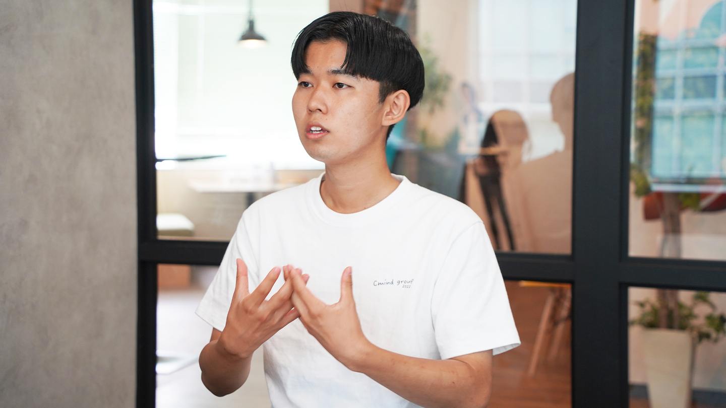 シーマインドの選考フローがかなり手厚く、最初にリクルーターの方がついてくれて、その方と所感を話してから一次面接に進むんです。他社の面接では、面接官が就活生を判断するといったスタイルが主流ですが、シーマインドのリクルーターは私と同じ目線でサポートしてくれて……。