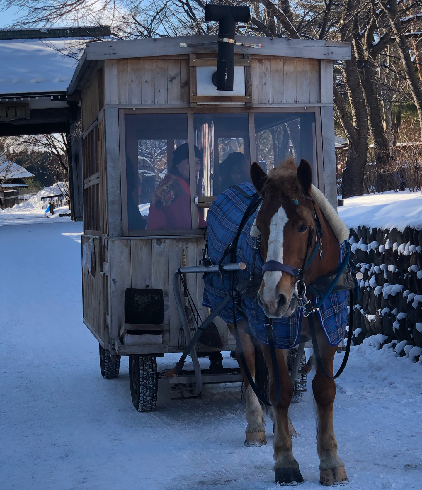 なんと、ストーブのあたたかーい空間を作りながら馬車に乗れるという企画。