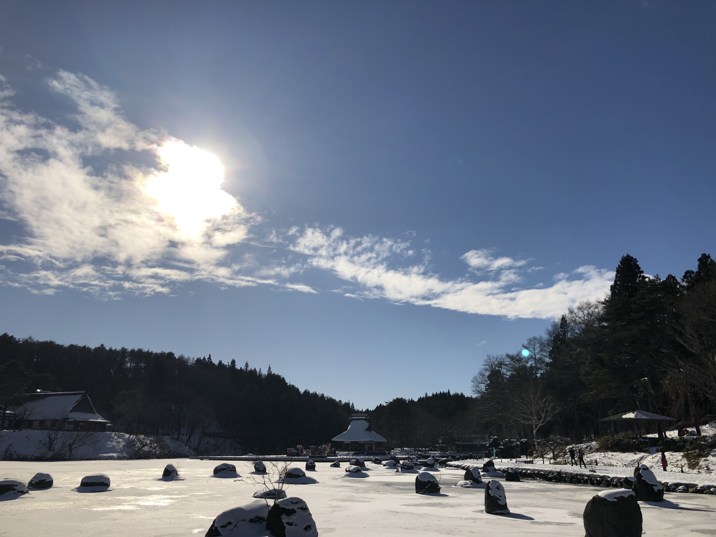 (湖面が凍ってない時に岩がどうなってるかすごい気になる…)それにしても、コタツからこの景色を眺めていられるなんて不思議な気分ですね。