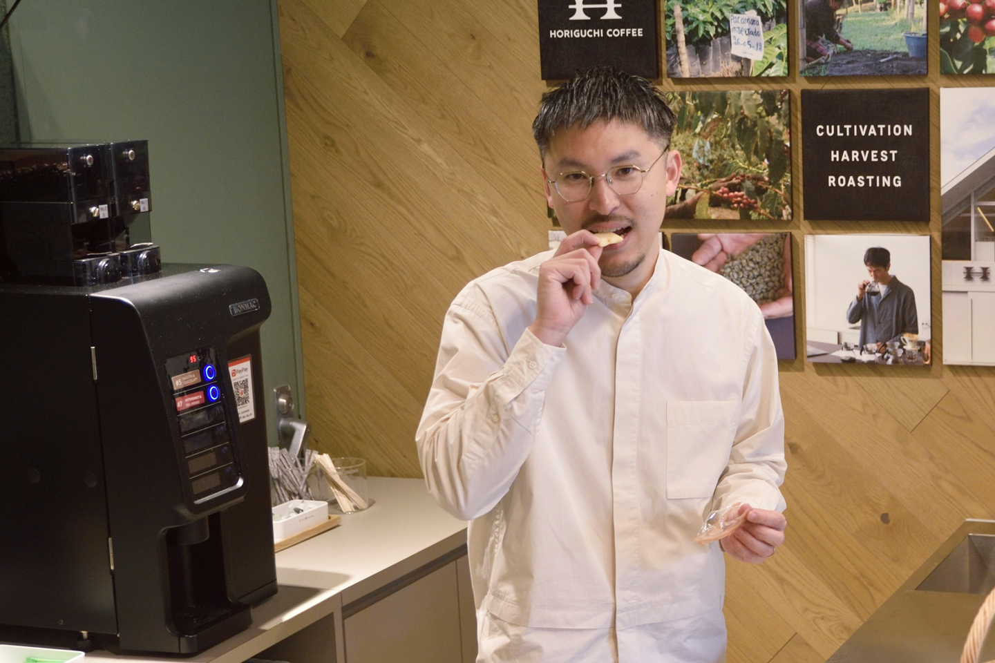 スイーツ男子な矢島さん。オフィス近くのチョコレートブラウニーをよく召し上がっています(笑)