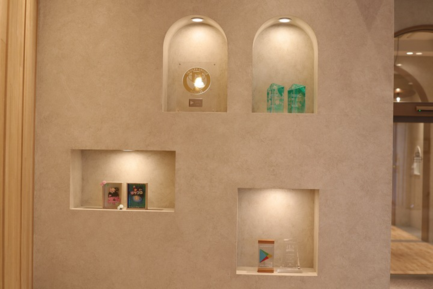 表彰盾がたくさん!「栄光」って感じの光景です。私も人生に一個は欲しいなぁ。
