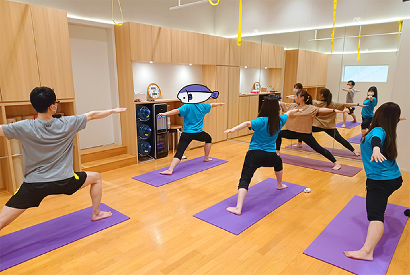 ヨガの要素の柔軟性を高め、体の芯(コア)を引き締めるレッスンなので、