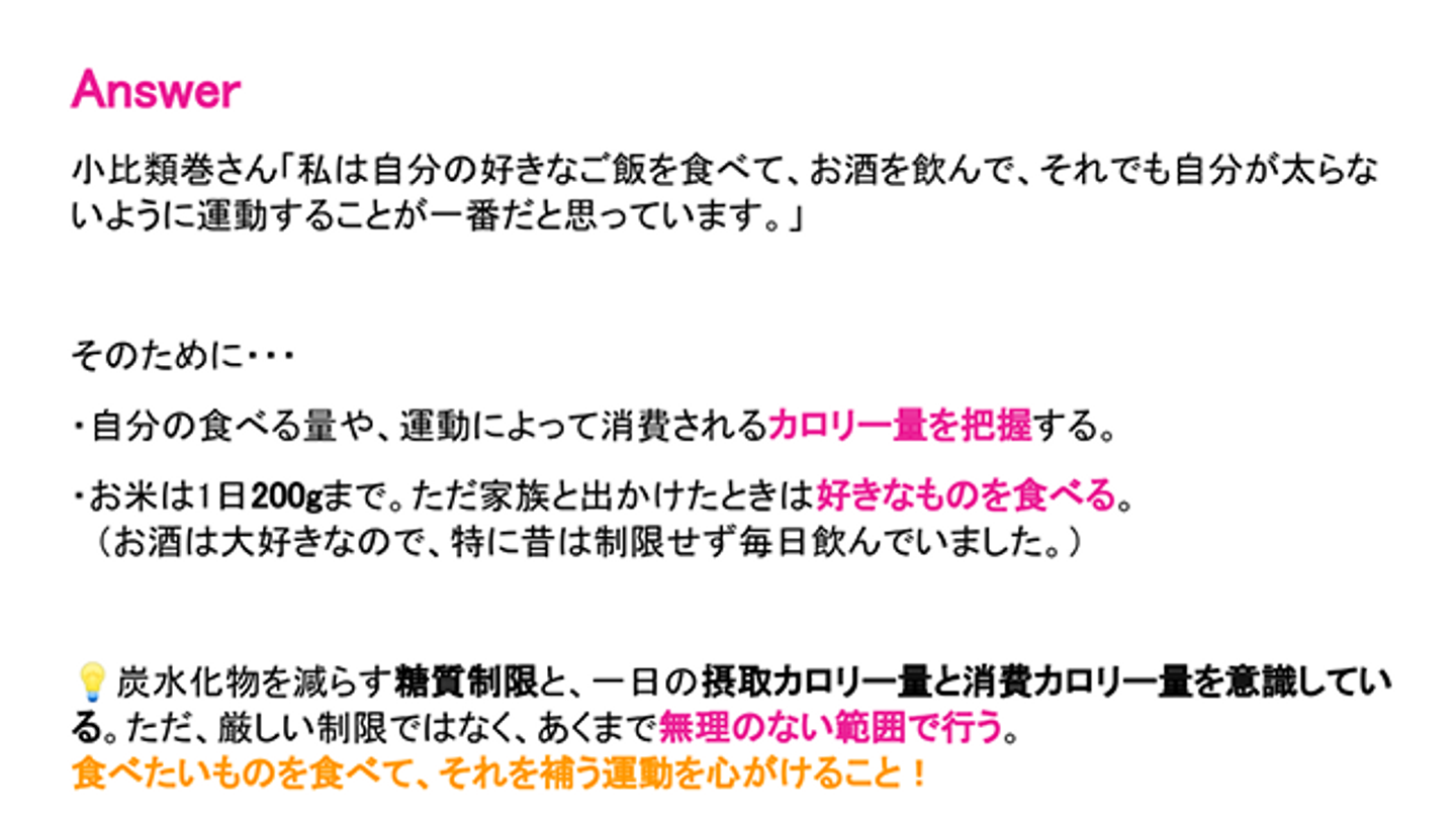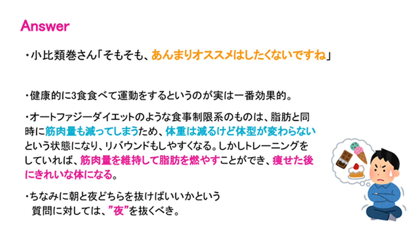 食事から運動まで幅広いご質問にご回答いただいたのですが、