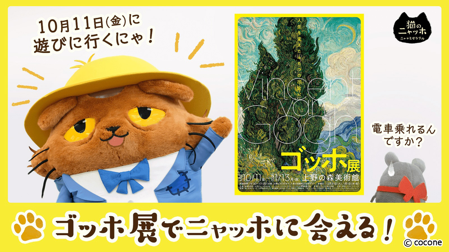 アニメ化もされた『猫のニャッホ ~ニャ・ミゼラブル〜』は、上野の森美術館で開催された「ゴッホ展」とコラボ。主人公の「ニャッホ」が応援サポーターとして同展を盛り上げました。