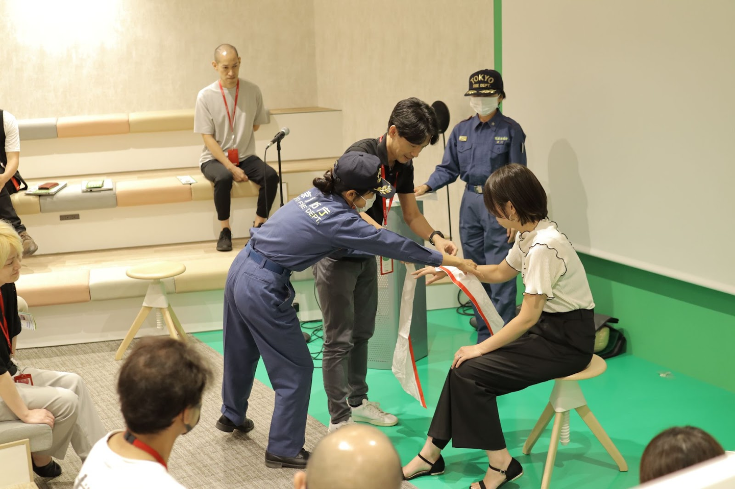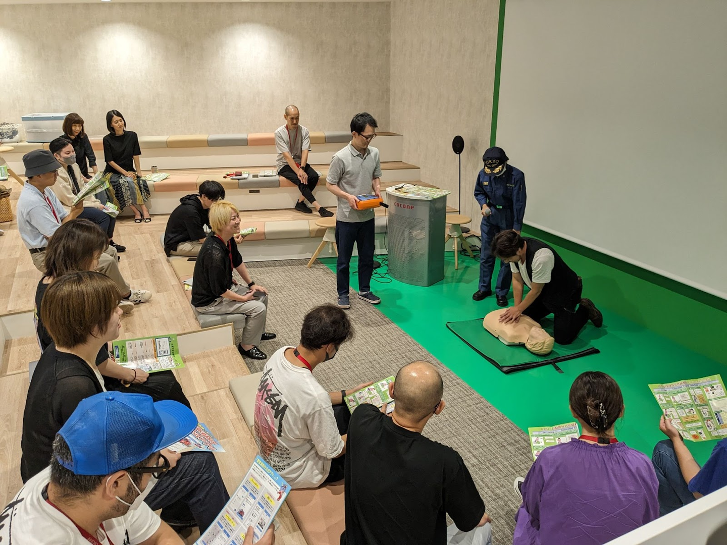 9月下旬、東京消防庁世田谷消防署から消防署員の講師2名をお迎えし、社内の自衛消防隊(※)向けに自衛消防訓練を実施しました。