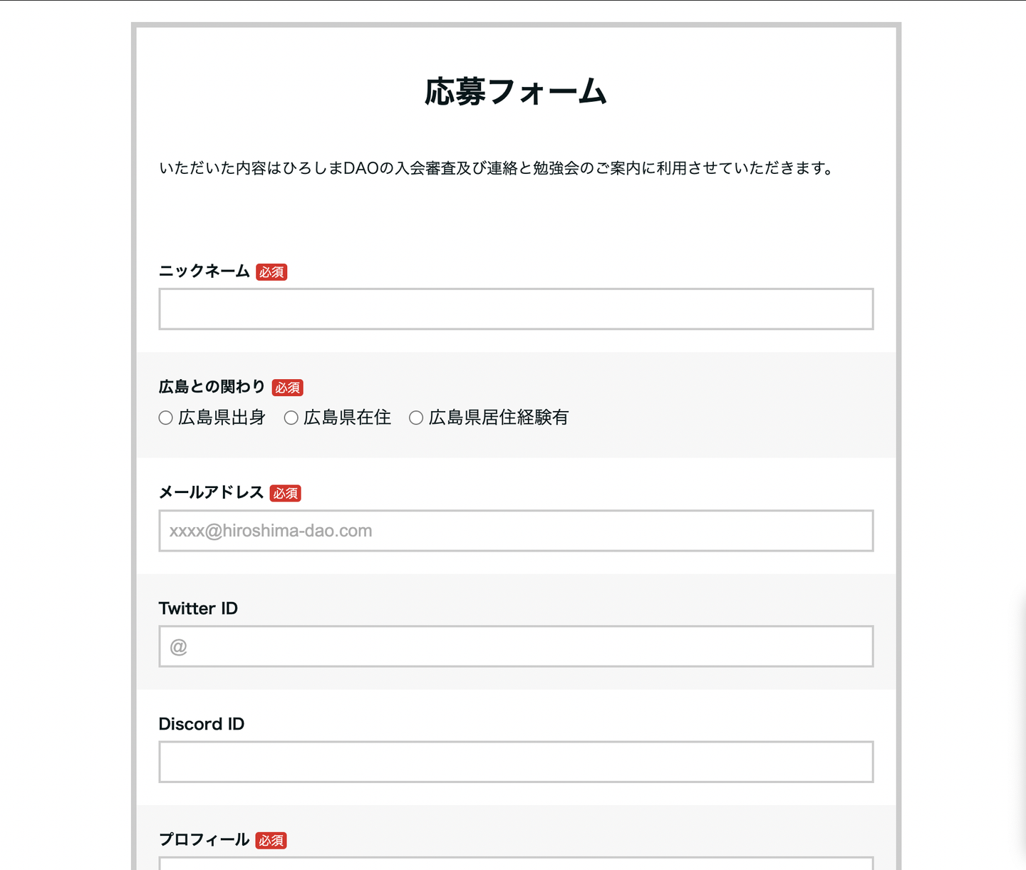 入会審査があり、その後ディスコードに参加いただきます。誰でもエントリー可能なので、県内、県外問わず、広島を盛り上げたい!という想いを持った方の参加お待ちしております!