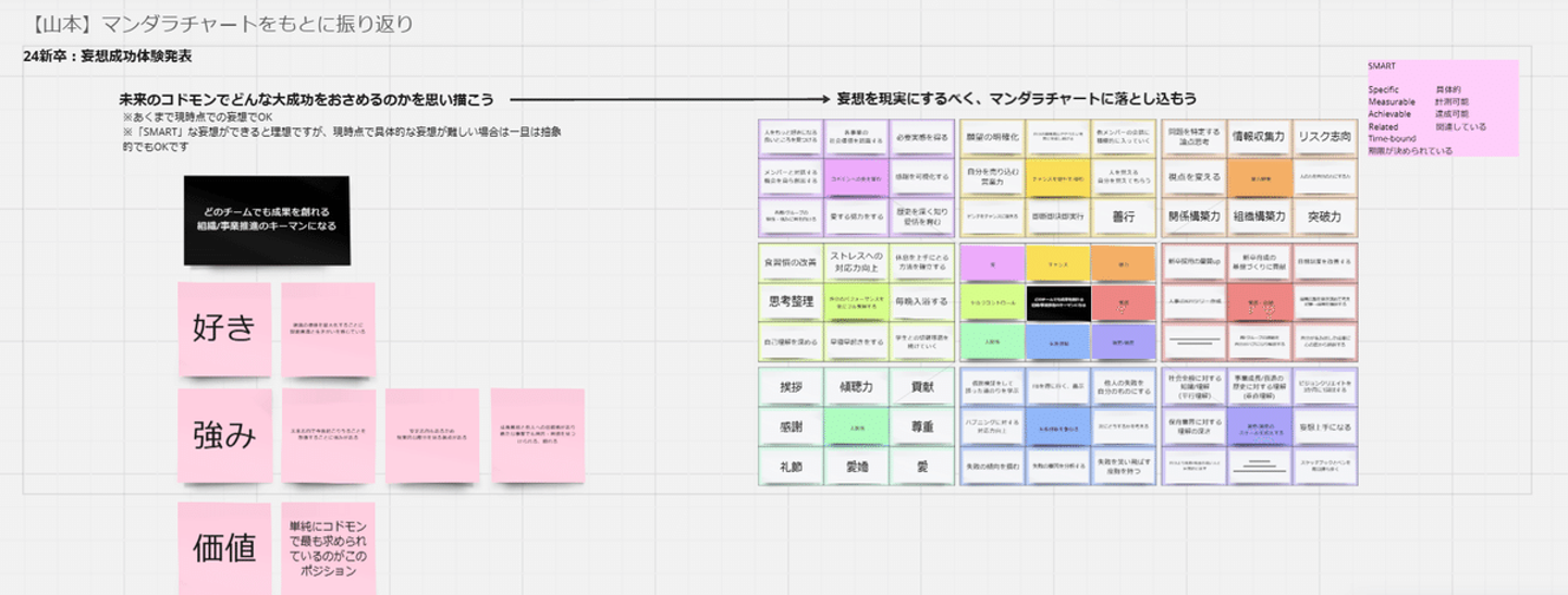 振り返り「妄想成功体験マンダラチャート(新卒研修の終盤)」