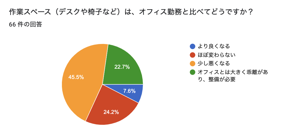 例えば、夫婦でフルリモートになると、作業場所の取り合いになったり、会社ならデュアルディスプレイ(複数画面)での作業ができるが、自宅にはないことが多く、どうしても作業効率は下がります。また、椅子も床に直座りだったり、リビングの椅子だったりして、長時間の作業には向かず、体調にも影響を及ぼす場合があります。