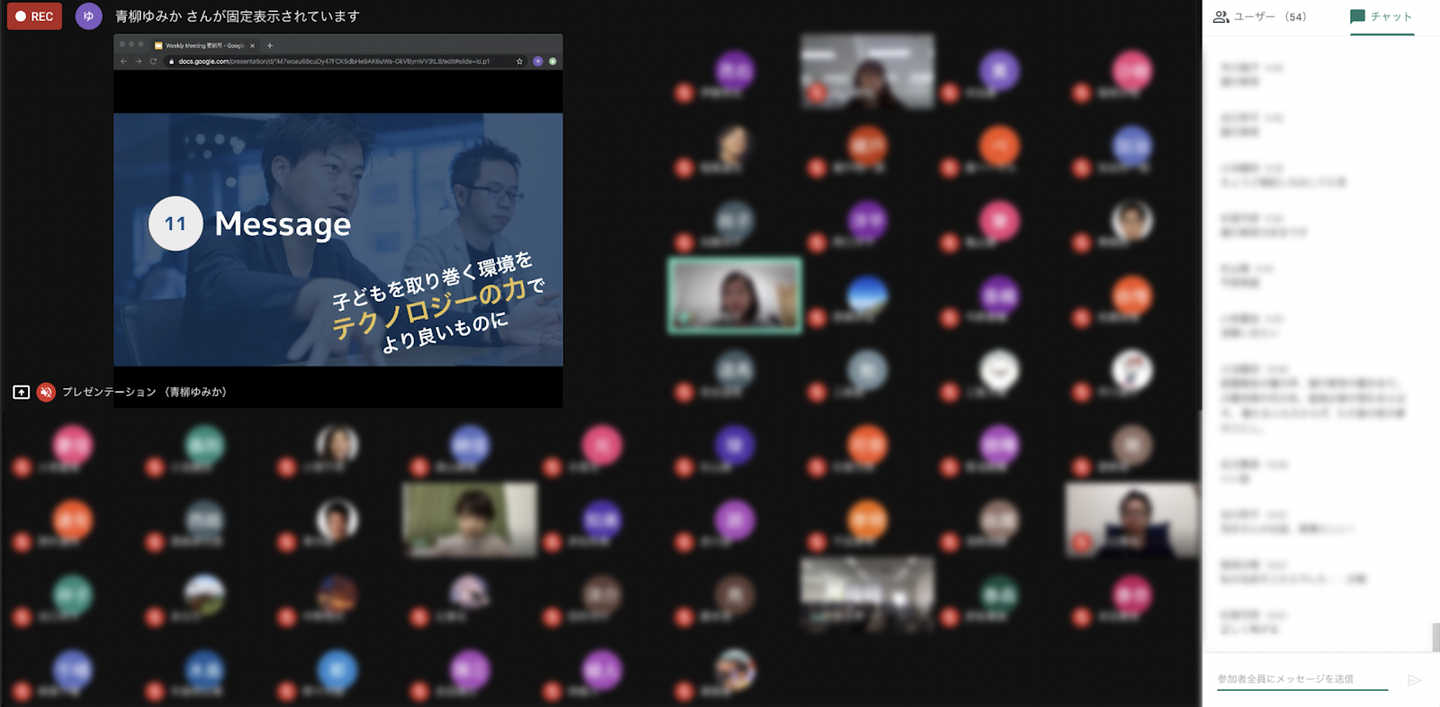 コドモンのサポートは現在、宮崎オフィスが担っています。また、オフィスも全部で3拠点のため、全社会議のリモート化はかねておりチャレンジが進んでいました。最初は接続がうまくいかず音が出なかったり、画面が映らなかったり、アナウンスでミスリードして参加できない人が出てしまったりと問題が多々ありましたが、回を重ねる毎に精度は高まってきています。
