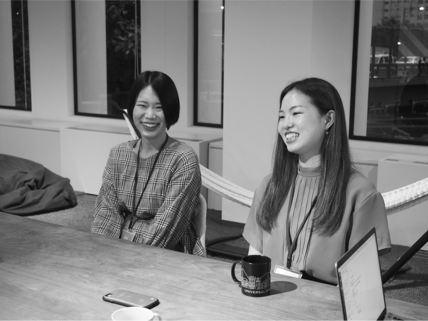 (上) もう21卒のみんなも会社にきていますし、もっともっと成長スピード上げていかないとなって思います。