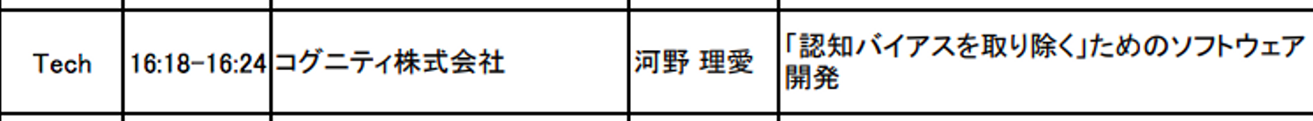テーマをsocial business系、Life style系、tech系の三つに分け、登壇者は一人当たり5分間、投資家に向けたプレゼンテーションを行います。弊社はtech系で登壇いたします。
