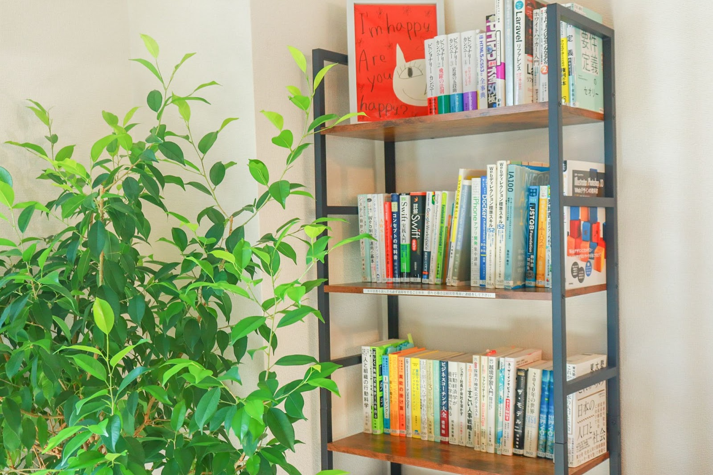 オフィスにはあちこちに本棚があり、専門書や参考書などさまざまな書籍が揃っています。