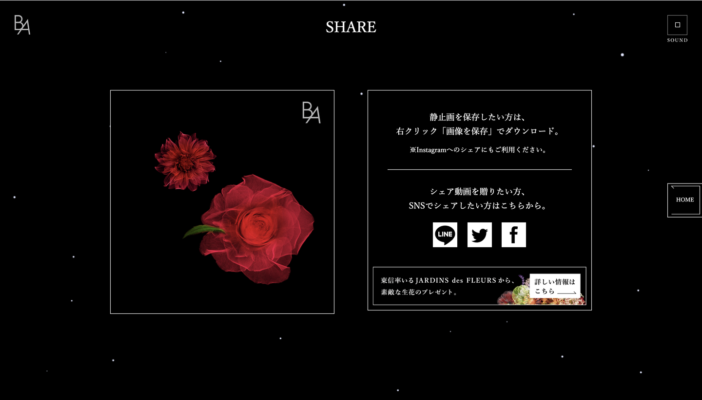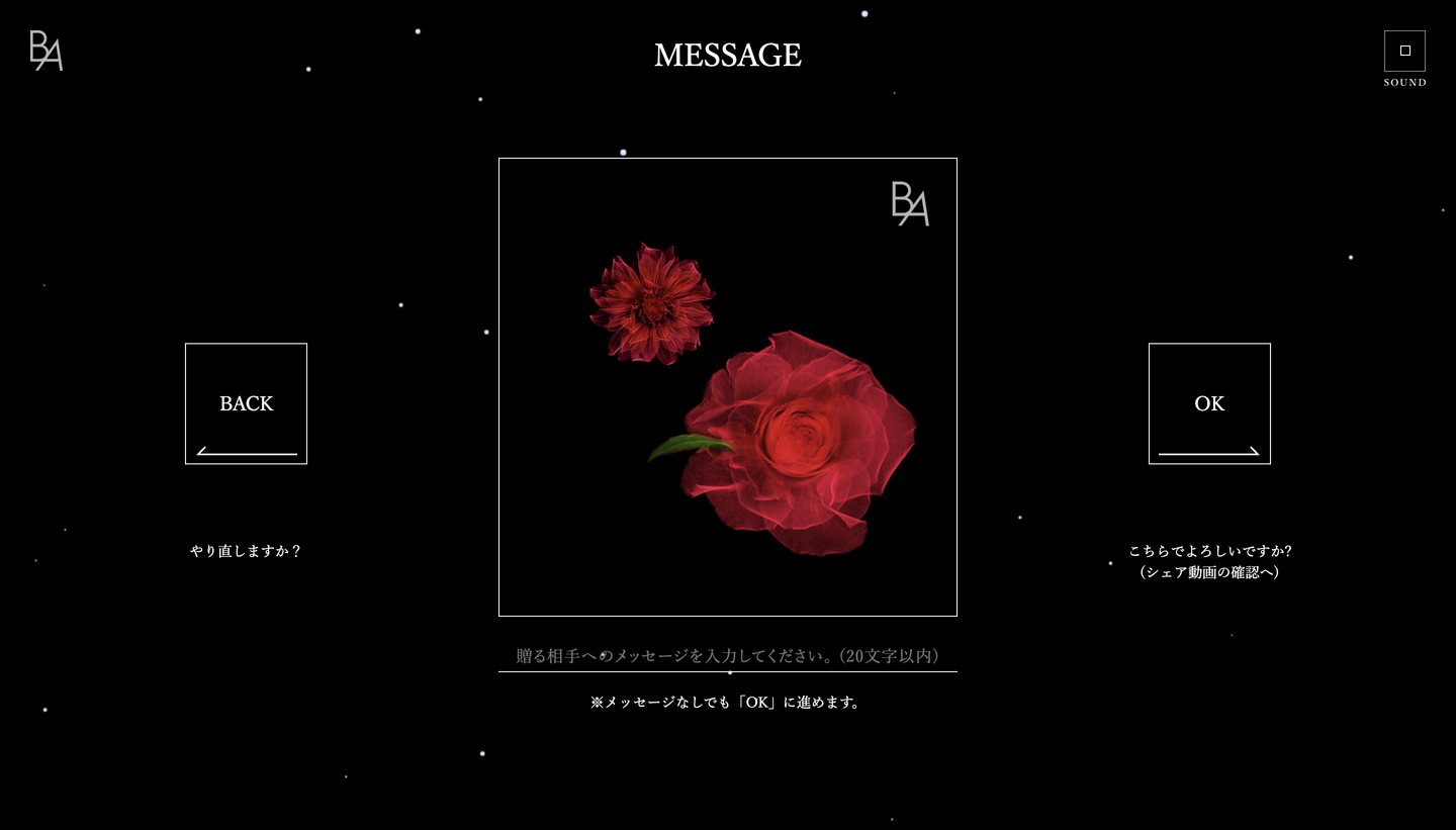 ブランドの認知拡大、及びロイヤリティの向上を目的に、Webサイト上で作った花束に感謝の言葉を乗せてシェアするWebサイトを制作。