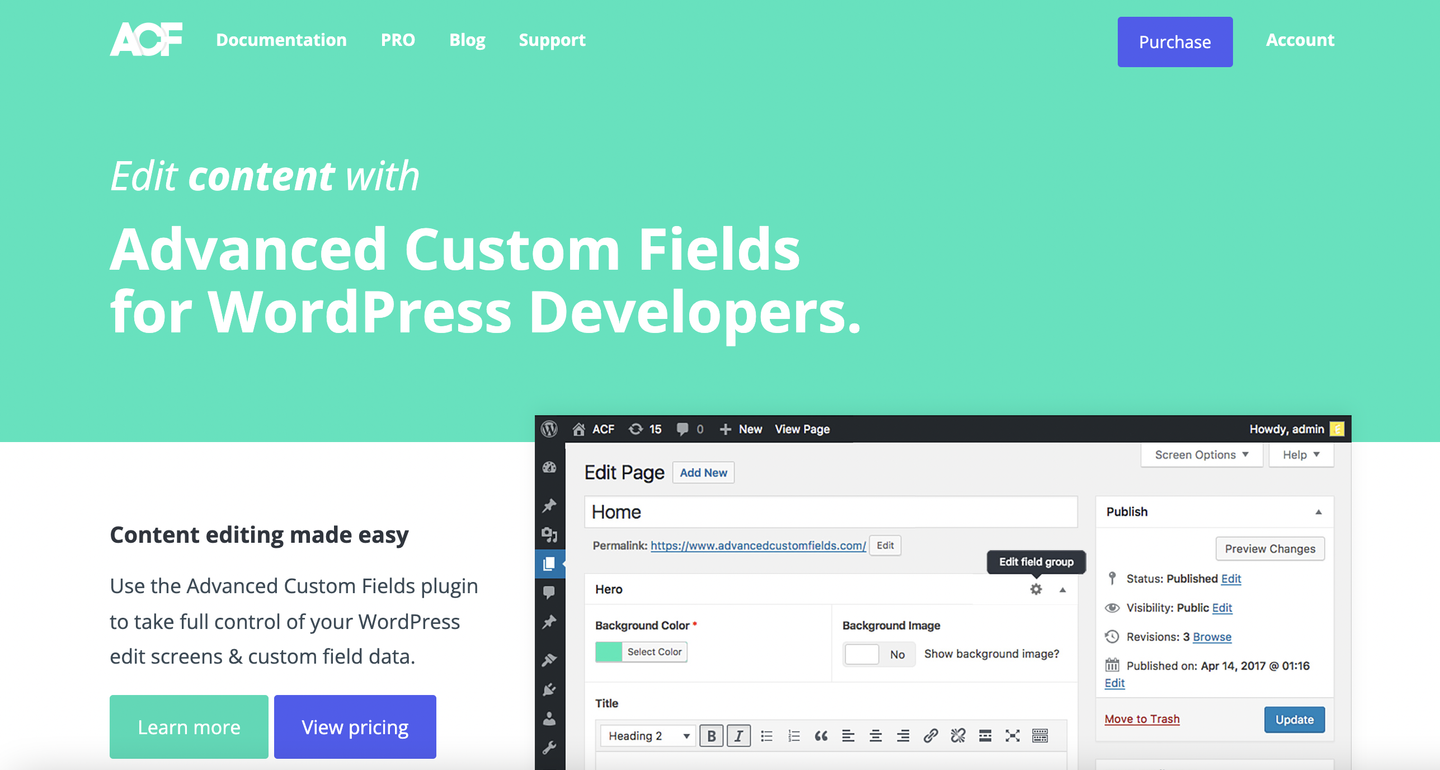 「Advanced Custom Fields」は、WordPressのカスタムフィールドの仕組みを拡張して、さまざまな形式の入力項目を追加できる様にするためのプラグインです。