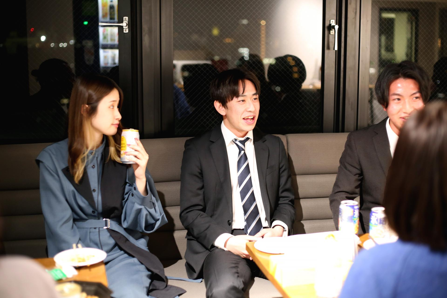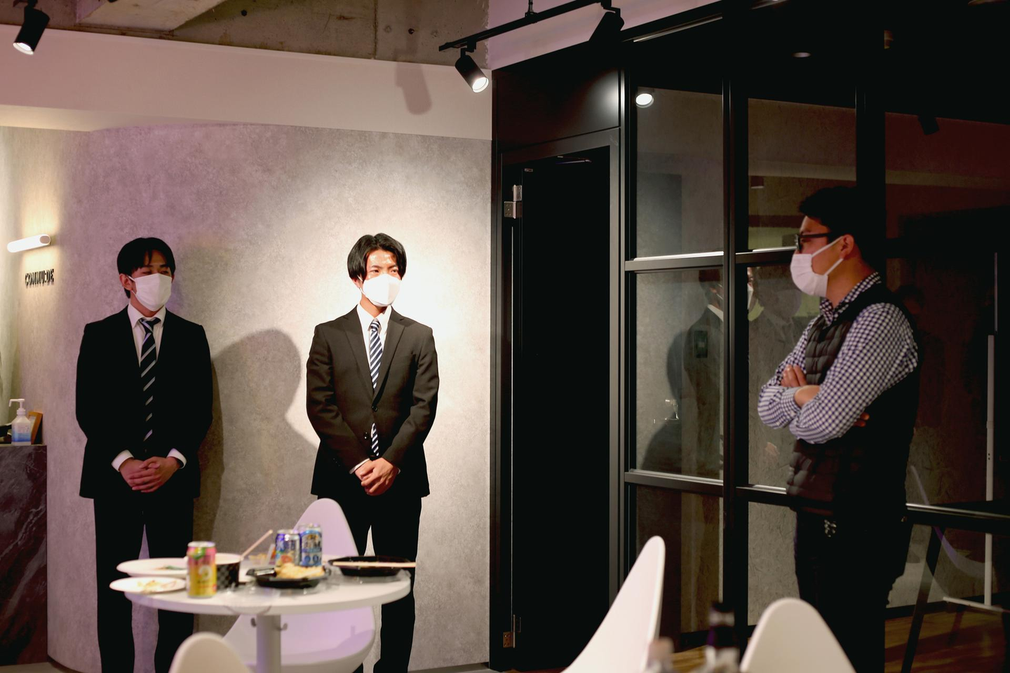 ドキドキの入社式が終わった後は、コムデメンバー総出の懇親会を開催!入社式では緊張した面持ちの2人でしたが、懇親会ではリラックスした様子でメンバーとの会食を楽しんでくれていました。