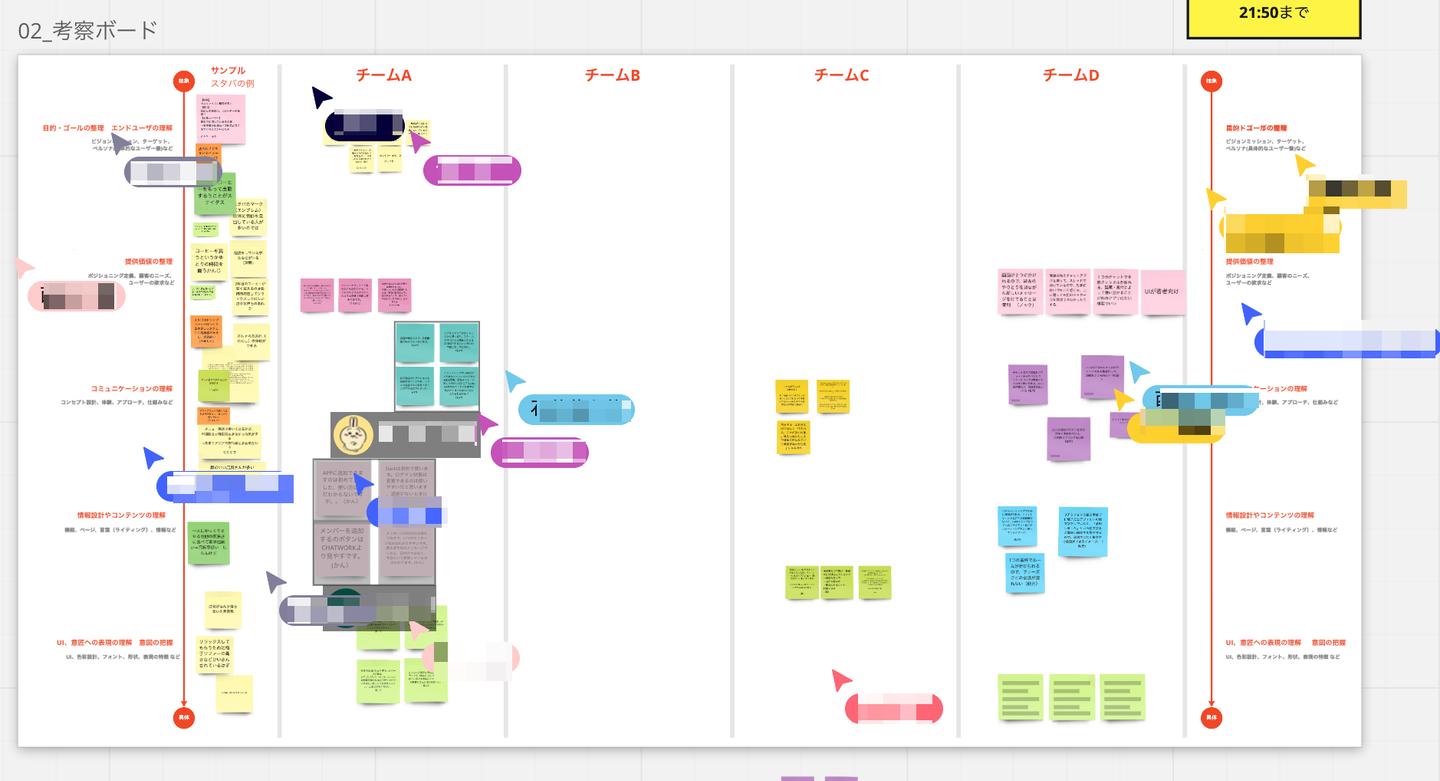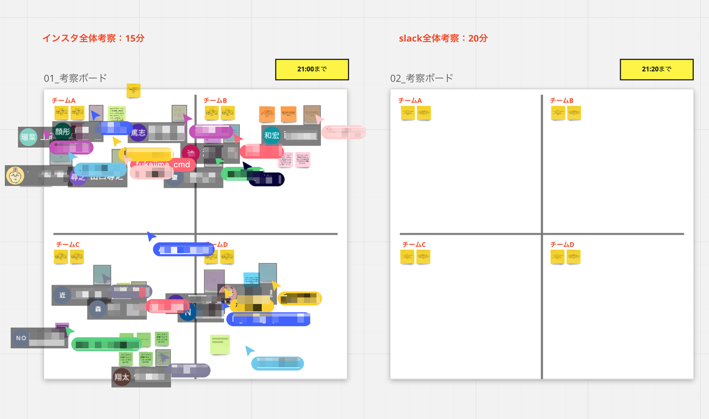 今回の研修はチームに分かれてのグループワークになります。そのためチームごとにオンライン上で意見を付箋にまとめています。