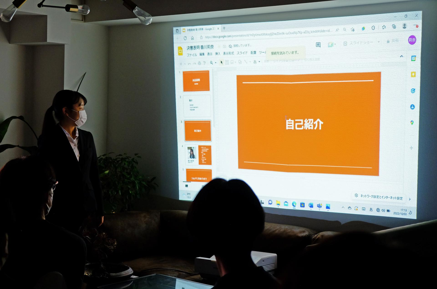 内定者のお二人からは自己紹介と決意表明、今後の目標をプレゼンしてもらいました。
