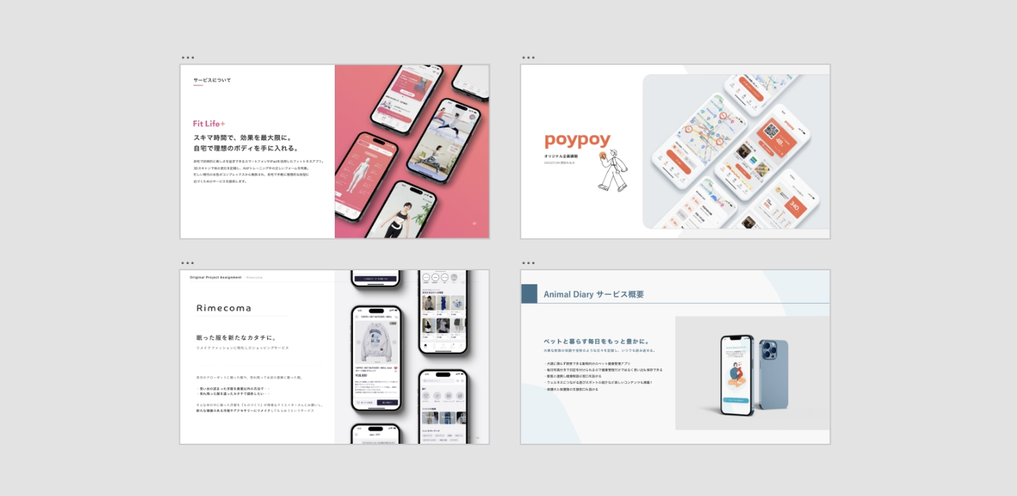 一人あたり15分ほど時間で企画〜デザインまで発表。