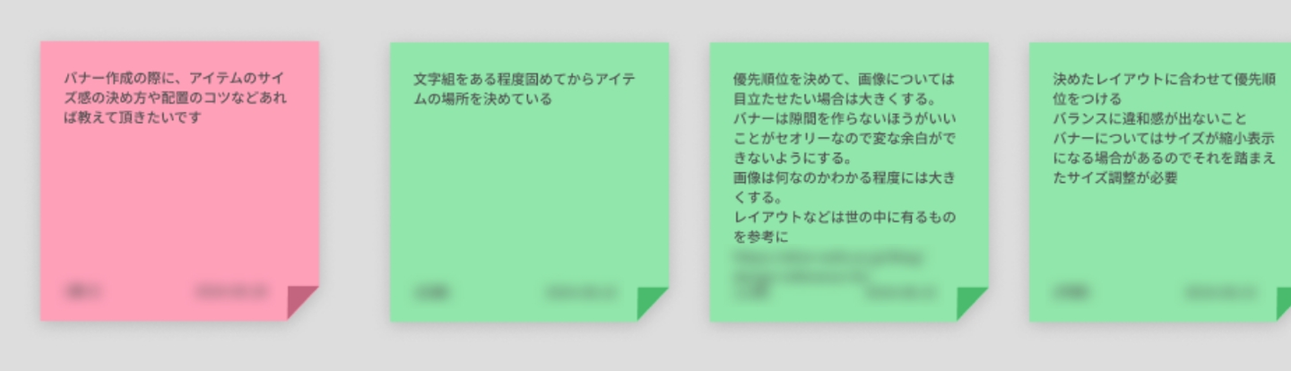 - レイアウトやフォント等、ポイントごとで沢山参考を見つけてストックを残し、後に精査していく