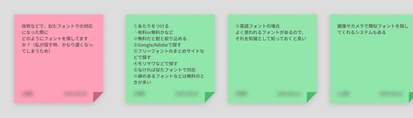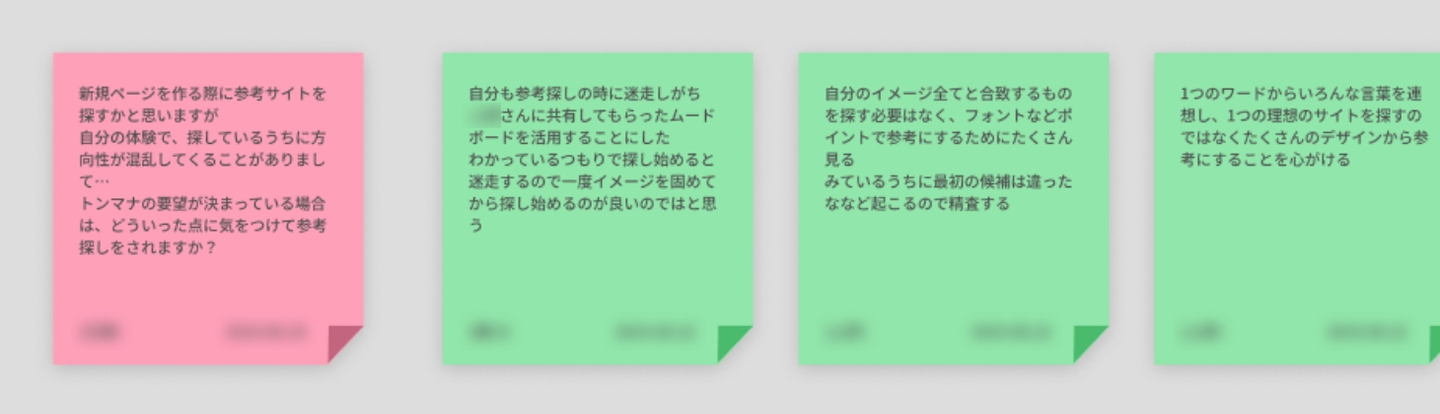 質問と回答内容は、ナレッジとしても残せるので、付箋形式で議事録を取っていきます。