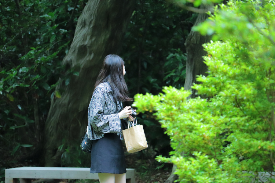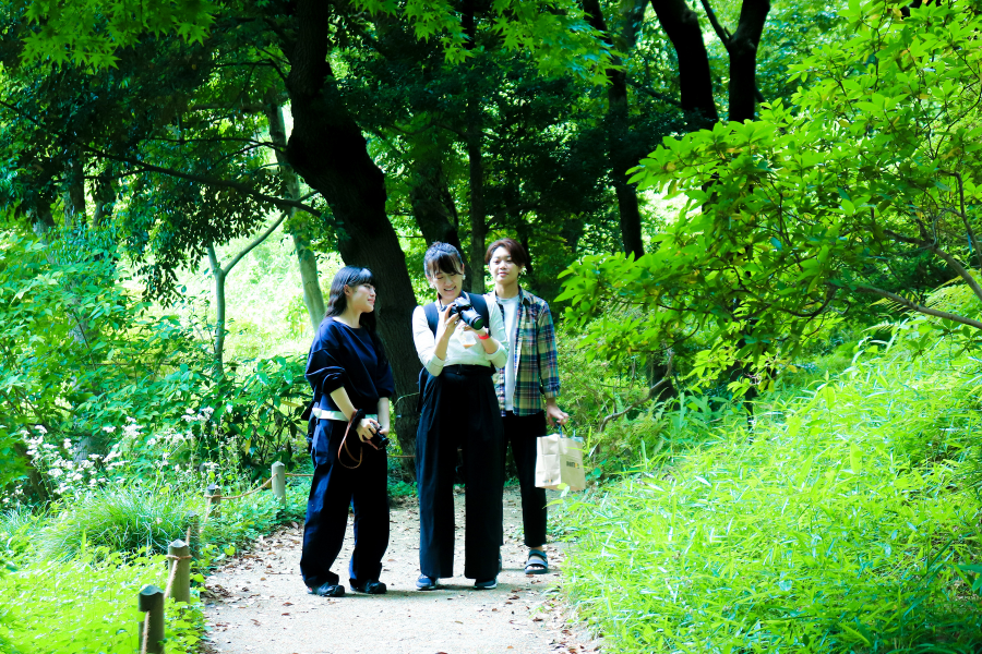今回撮影したのは、庭園の緑や池、橋、建物、そしてメンバー同士のポートレートなどさまざま。
