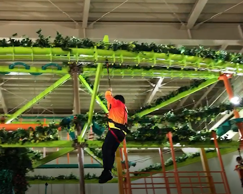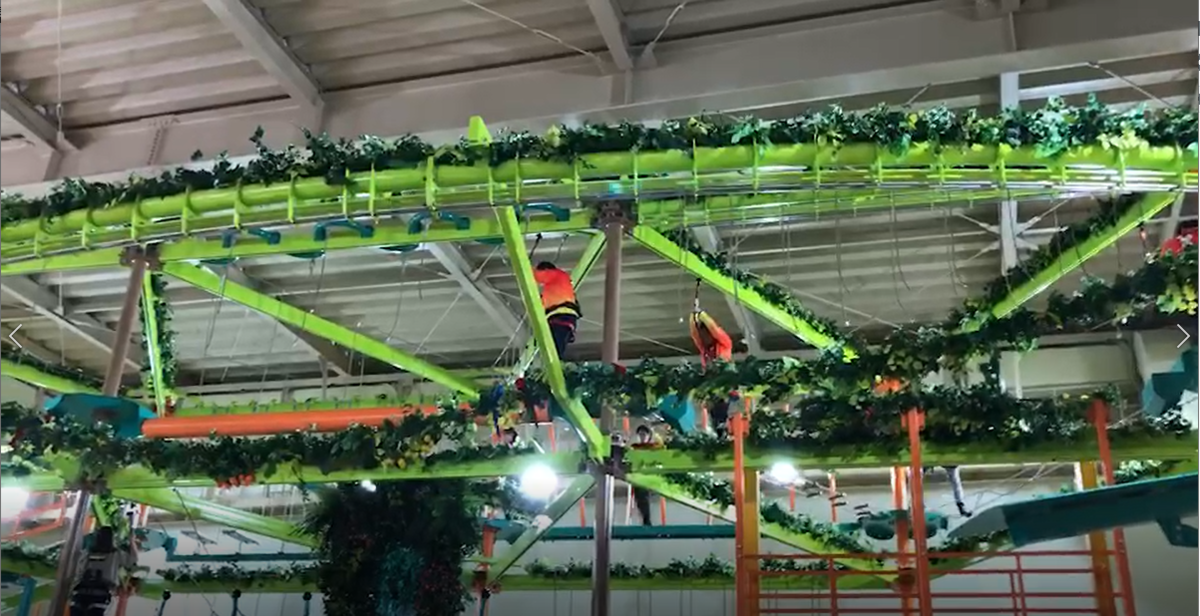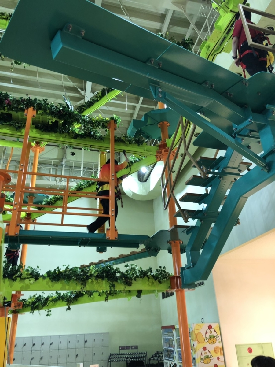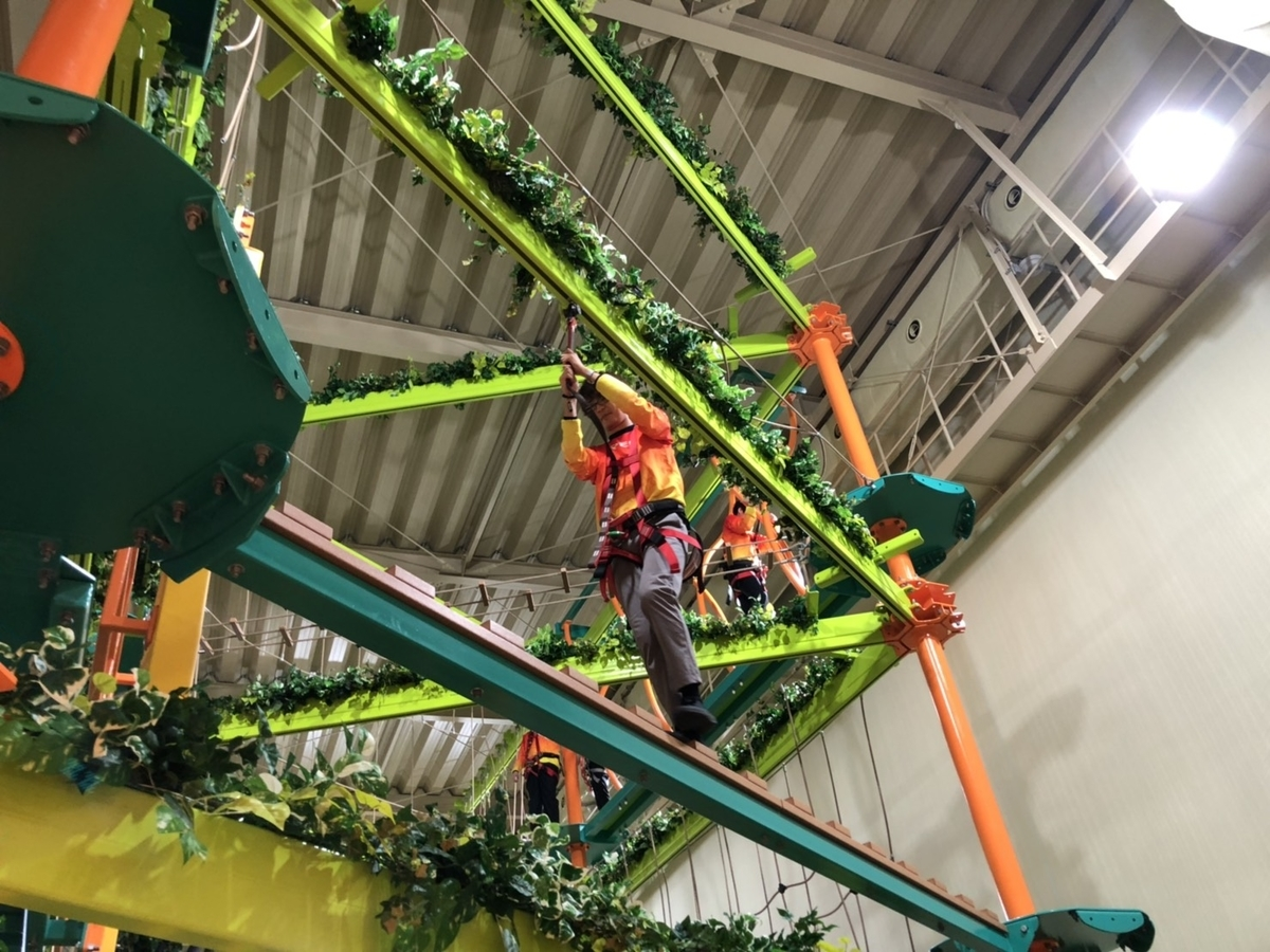 三階建てのアスレチックで1階120cm未満のお子様用のアスレチック、2階・3階は120cm以上の人へ向けた結構ハードなアスレチックになっています。