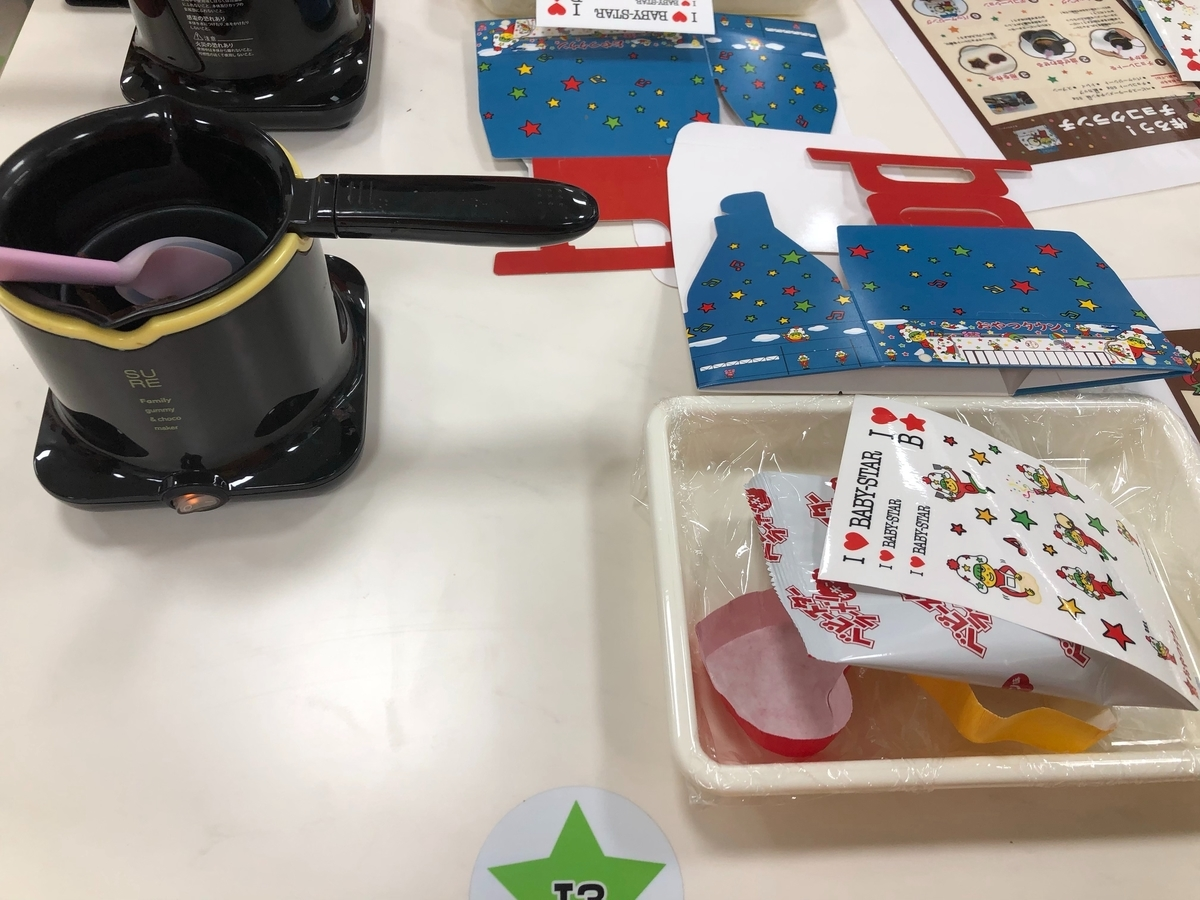 こんな感じでトレーの中に色々用意されてて、ベビースターチョコクランチという何それ絶対おいしいじゃんっていうの作ることになりました。