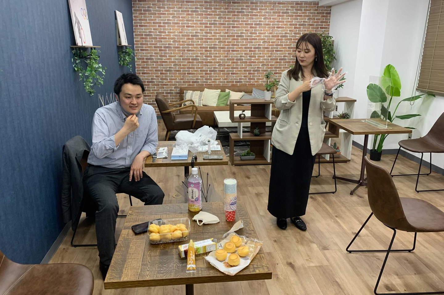 催し物としてはシュークリームに練りからしを注入し、それを10人で食し、からしの入っていないシュークリームを食べた一人は誰なのか当ててもらう!という企画で、第一営業部メンバーが考えたものです。