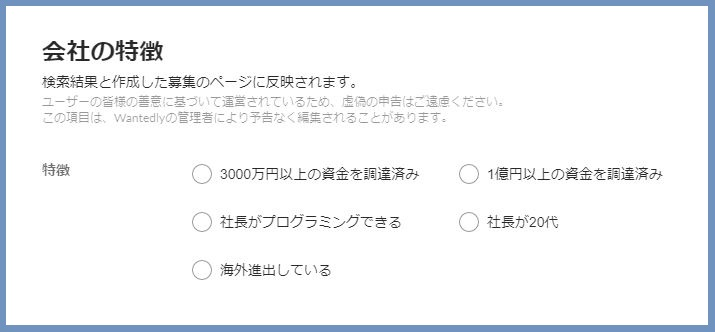 当社はウォンテッドリーさんがデフォルトでご用意してある5種類の選択肢では収まらないようなワールドワイドな特徴があります!