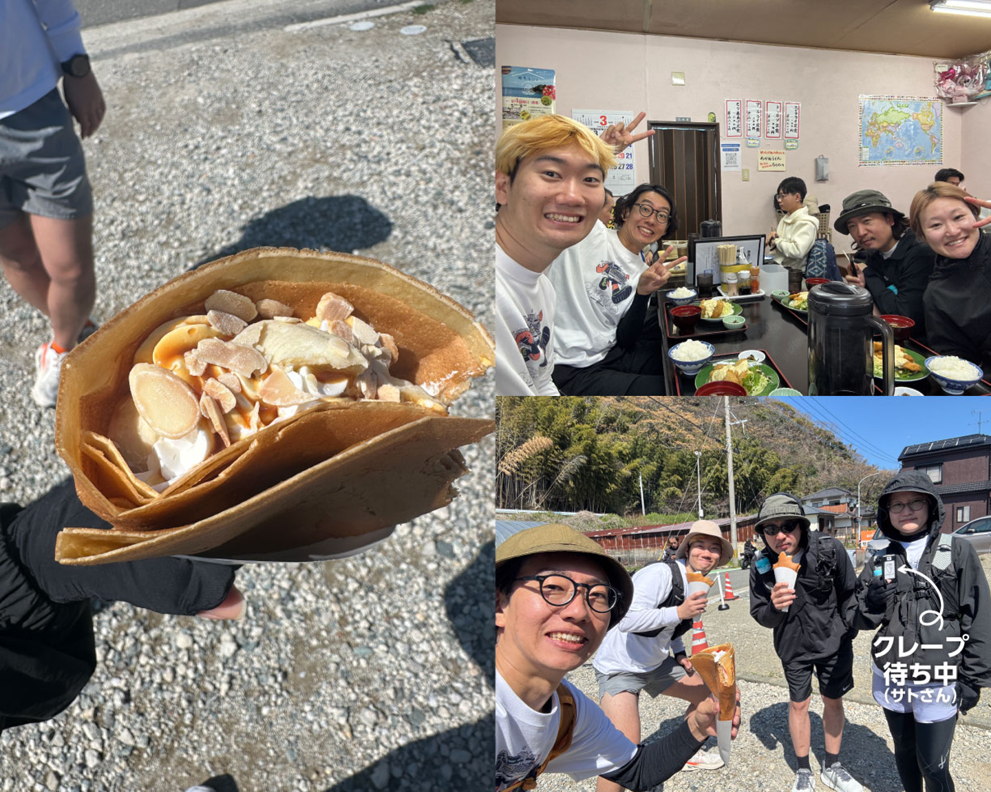 志賀島では定食を腹一杯食べて、締めにクレープですよ。めっちゃ楽しんでる。なんか車でみんなでドライブしにきてるみたいなテンションやん。