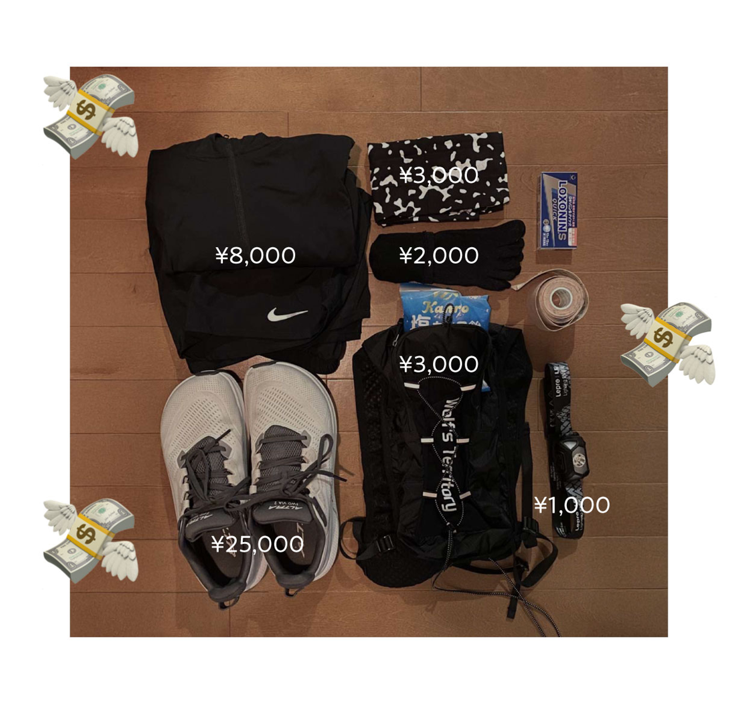 - ランニングウェア(パンツ/シャツ/パーカー):約8,000円