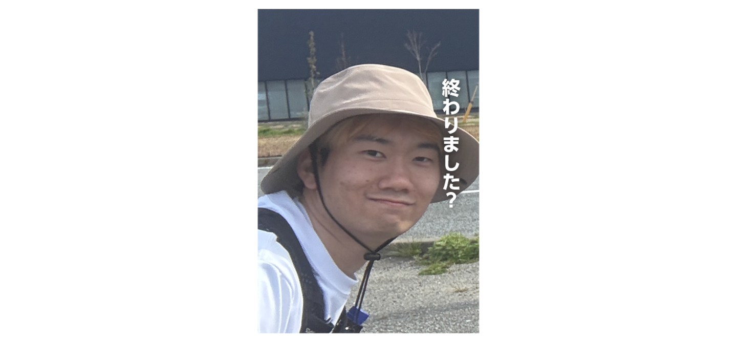 サトさんは日差しが強かったので日焼け防止対策で忍者みたいになってる。なるさんと変わってても誰も気づかんやろうな。