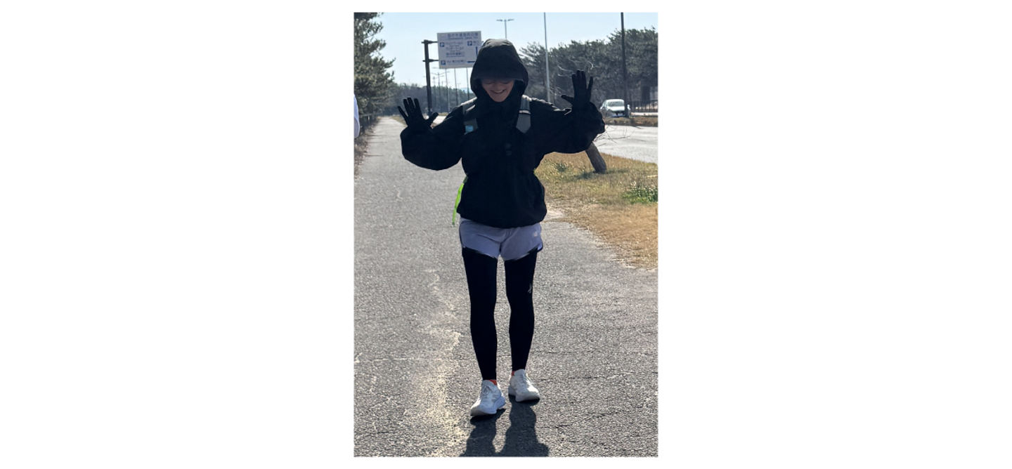 最後の方、原さんは少し遅れていたものの、持ち前の気合いと根性で足を引きずりながらゴール。