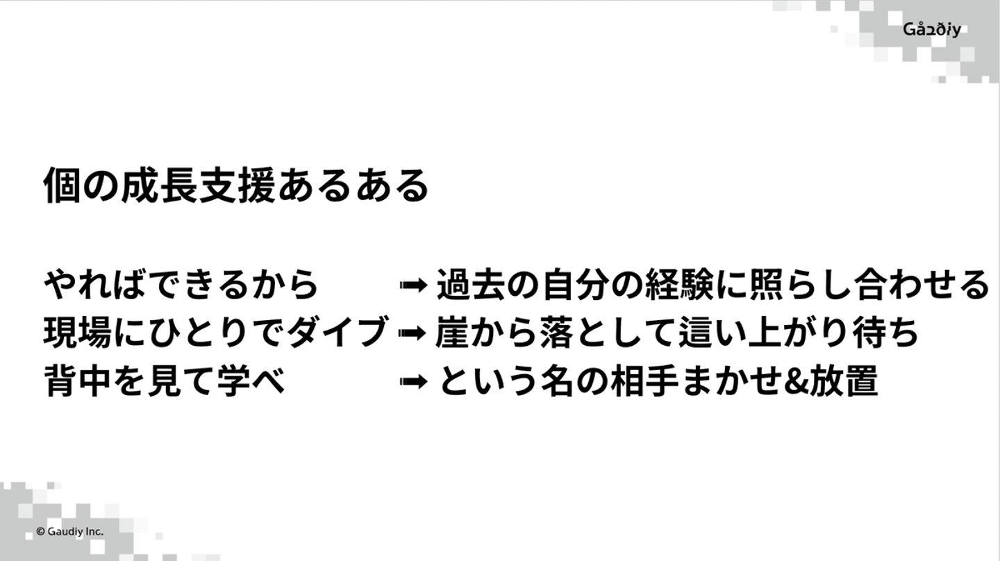 ちょうどその頃、GaudiyのHRチームも、まさに個の成長支援の壁に直面していました。