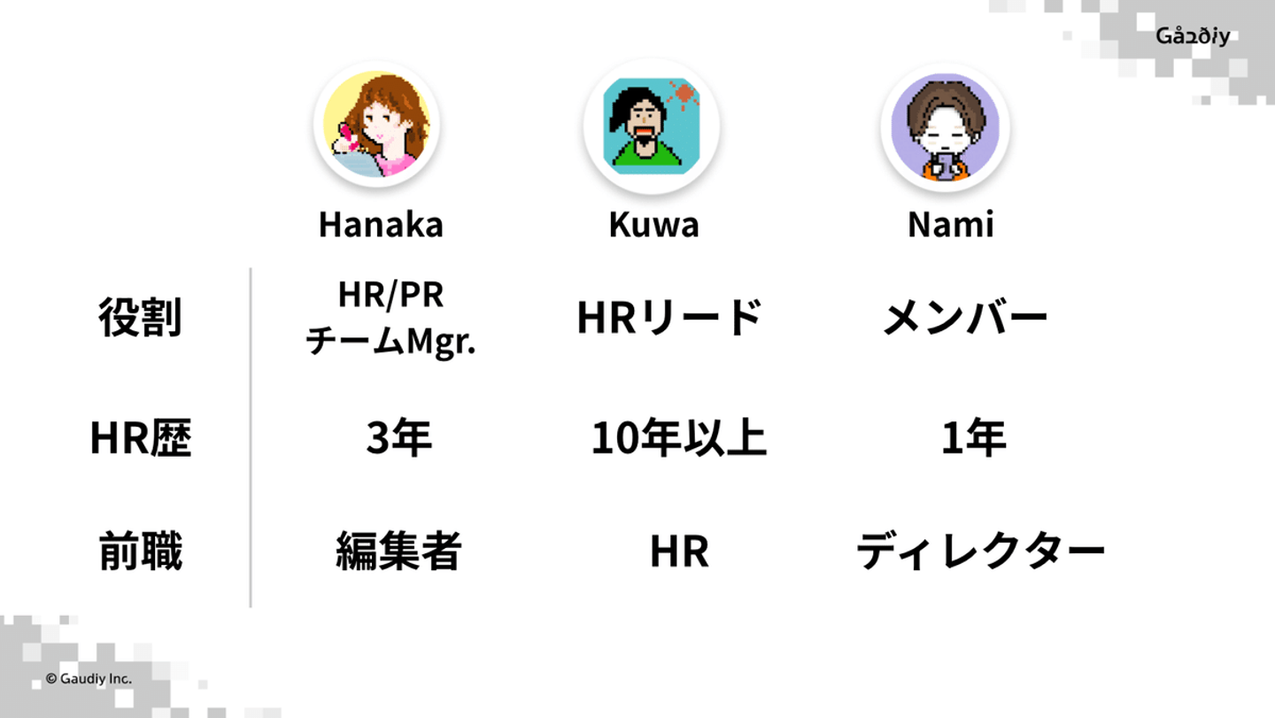 私は、Gaudiyが3社目になります。50人規模の会社で開発ディレクターとしてキャリアをスタートさせた後、人事に転身し、2社目の500名規模のベンチャーでは一貫して採用領域を経験してきました。その過程で、新しいメンバーのメンターになることも多くありました。