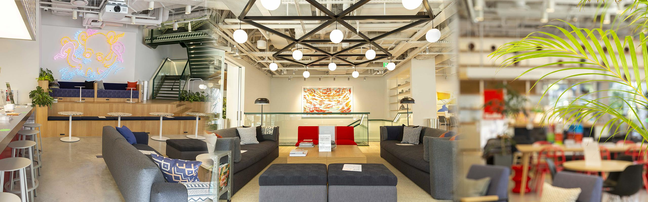 抜群のロケーションを誇る曽根崎新地のコミュニティ型ワークスペース。WeWorkらしい多様性と美しいインテリアデザイン。そして近代的なアメニティを豊富に取り揃えています。オフィスとしても、より高い柔軟性を誇るソリューションを提供。アートをふんだんに取り入れたラウンジでクライアントと歓談したり、通勤にもこの上なく便利です。